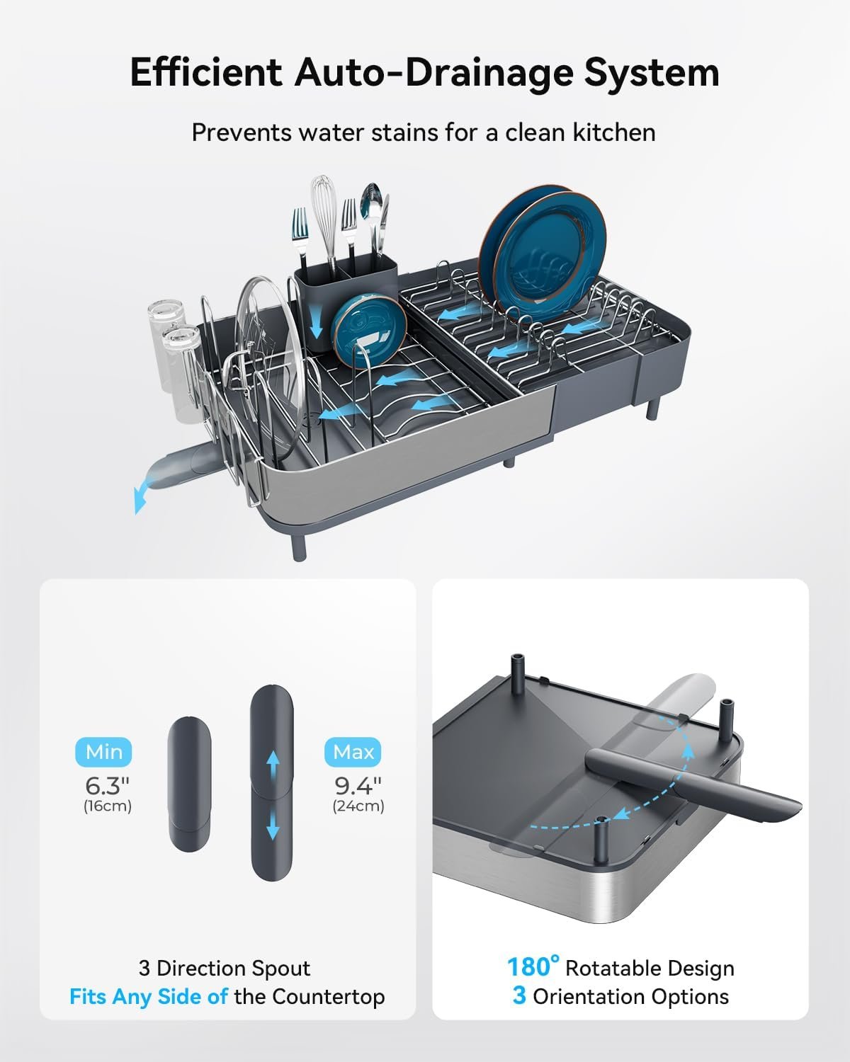 - [Expandable Design for Flexible Use]: Sunly expandable dish drying rack easily adjusts from 16β to 21.3β in length, giving you the flexibility to maximize drying space when needed, or keep it compact to save countertop space